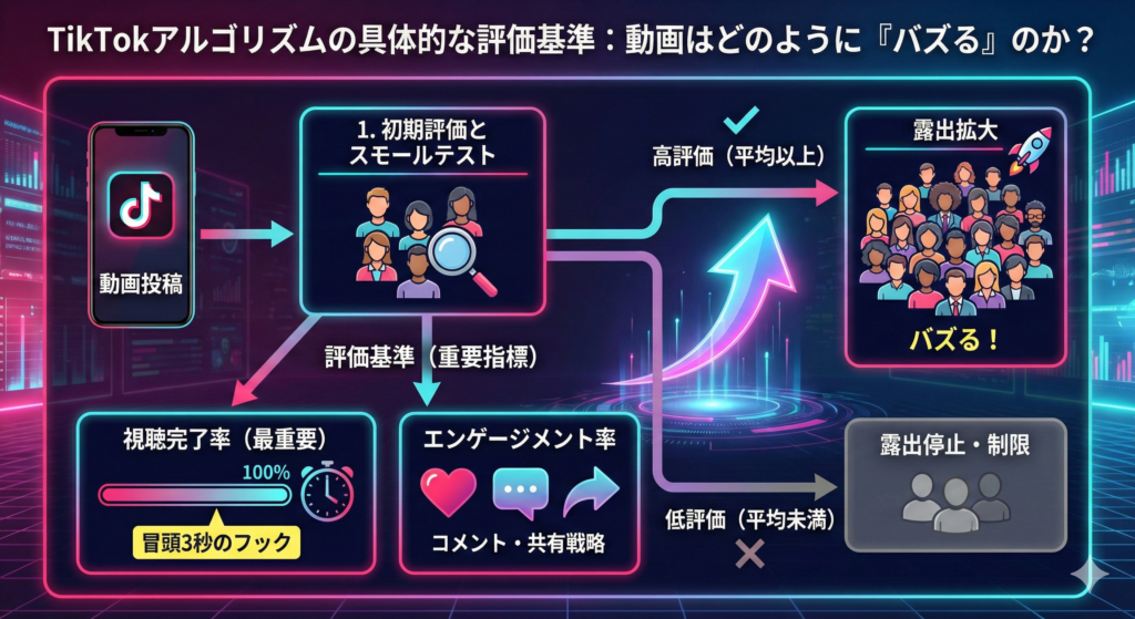2. TikTokアルゴリズムの具体的な評価基準:動画はどのように「バズる」のか?